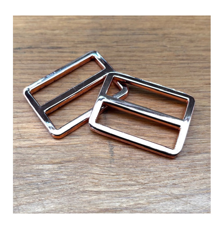 Boucle passant métal finition rouge gold 32 mm, robuste et fonctionnelle, parfaite pour ajuster bandoulières, sangles et accessoires couture. Apporte une finition chaleureuse et moderne à vos créations.