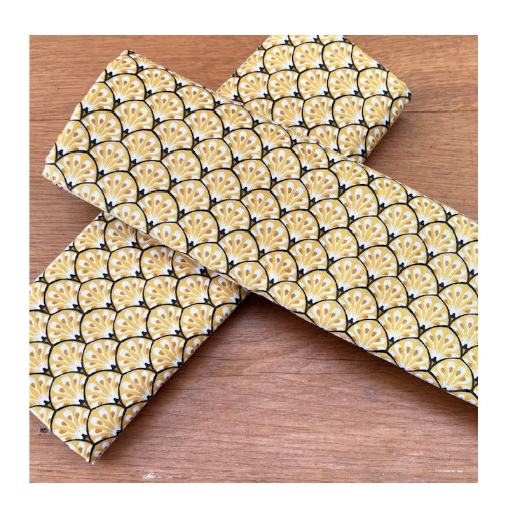 Le coton imprimé Gaudi Jaune Curry est un coupon de tissu coton imprimé au design géométrique inspiré de l’Art déco, reconnaissable par ses motifs en éventail modernes et structurés.