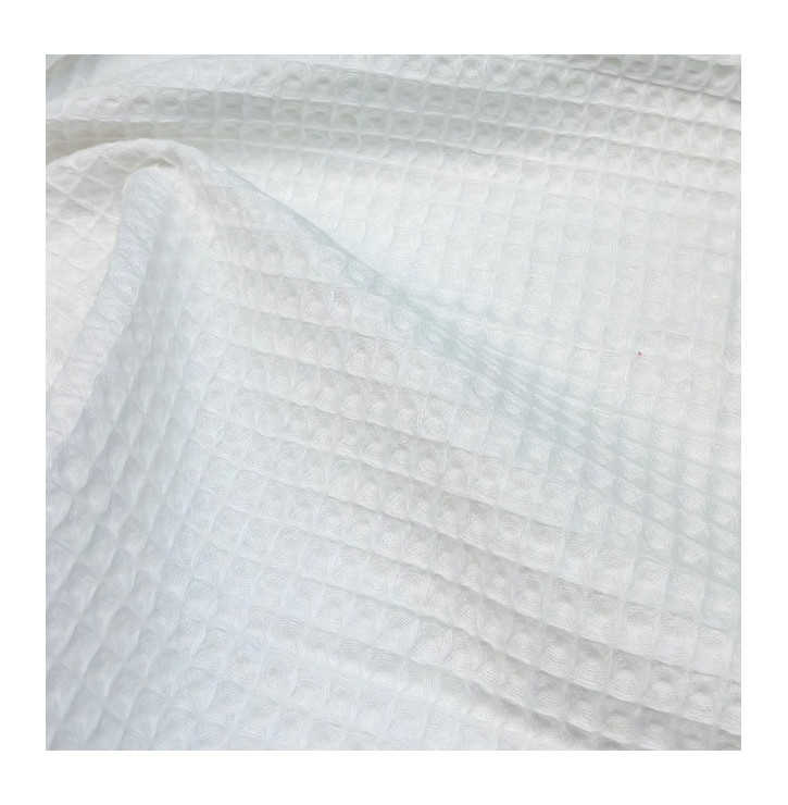 Coupon d’éponge nid d’abeille 100% coton coloris blanc, léger, absorbant et au tissage gaufré, idéal pour la couture du quotidien, les créations bébé et le linge de maison. Tissu agréable à travailler, vendu en coupon prêt à coudre. Les coupons sont livrés coupés et non en continu.