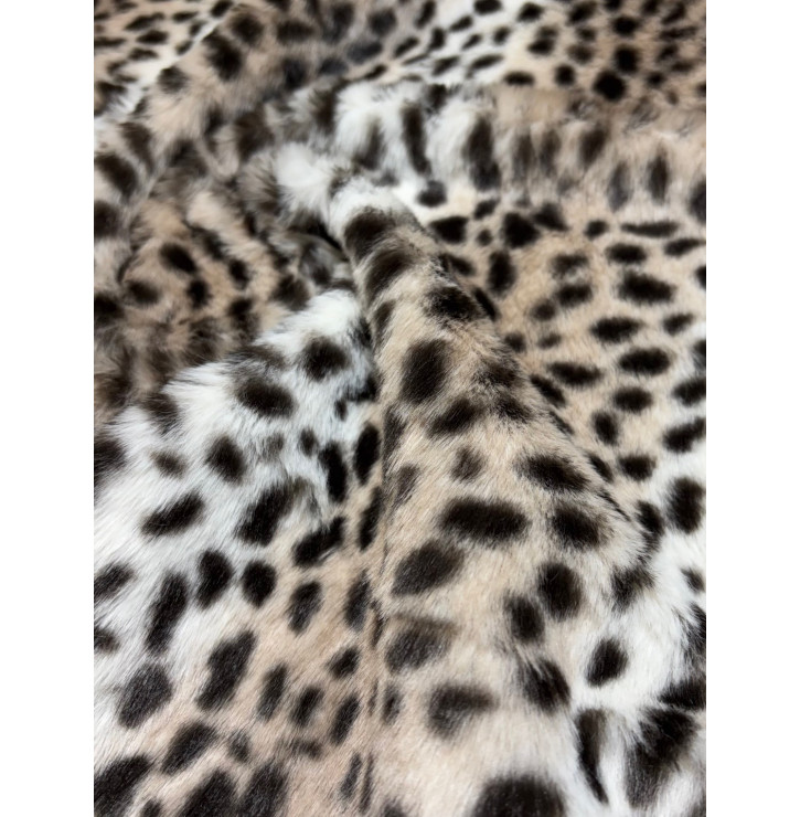 Coupon Fourrure Rabbit "Guépard" Galet/ Marron – 50 x 70 cm – Tissu Doux & Fantaisie