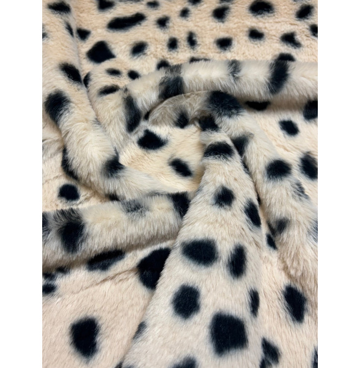 Coupon Fourrure Rabbit "Serval" Lin/ Noir – 50 x 70 cm – Tissu Doux & Fantaisie