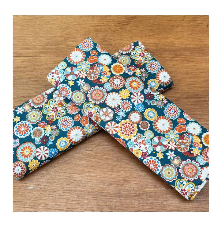Le coton imprimé Hinata Vert est un tissu au fort impact visuel. Son motif japonisant composé de fleurs stylisées multicolores crée un équilibre parfait entre richesse graphique et harmonie des couleurs.